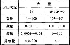 释义 | 痕量分析 指分析测定样品中含量低于100μg/g(即ppm)的组分(或杂质)。 按样品中杂质含量的不同常区分为下列四种方法,见下表: 痕量分析可能始于对化学试剂纯度的测定,现时仍应用于较多的方面,因为作为化学试剂首先要求严格控制自身的纯度,标准要高,而且要有可靠的测试方法。作为痕量分析用的试剂通常要求杂质控制在10ng/g之下,现时环境科学、生命科学、新材料科学等方面痕量分析都是必不可少的分析测试手段。 |
