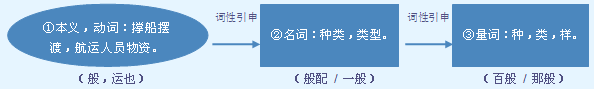 字源解说 “般”是“搬”的本字。般,甲骨文 = (舟)+ (竹篙)+ (又,抓),表示执篙摆渡。有的甲骨文 竹篙形状的 写成 。造字本义:用竹篙撑船摆渡,在两岸间运送人员物资。金文 承续甲骨文字形 。有的金文 将甲骨文的 写成 。篆文 将金文的 写成 。隶化后楷书 将篆文的 写成 。当“般”的“搬运”本义消失后,篆文再加“手”另造“搬”代替。 附 文言版《説文解字》:般,辟也。象舟之旋,从舟。从殳,殳,所以旋也。 附 白话版《说文解字》:般,点篙开船。像船旋转的样子。字形采用“舟、殳”会义。“殳”,是持篙撑行,是使船只旋转的原因。 引申线索
