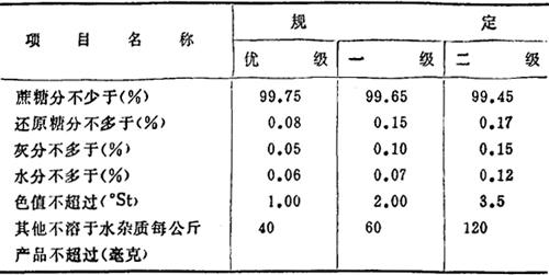 释义 | 白砂糖(国家标准GB317-64) (一)技术要求 1.优级、一级白砂糖的感官指标必须符合下列要求 (1)糖的晶粒应均匀,松散干燥、不含带色糖粒或糖块。 (2)糖的晶粒或其水溶液味甜,不带杂、臭味。 (3)溶解于洁净的水中成为清晰的水溶液。 2.二级白砂糖的感官指标必须符合下列要求 (1)糖的晶粒应均匀松散。 (2)糖的晶粒或其水溶液味甜,不带杂、臭味。 3.优级、一级、二级白砂糖的理化指标必须符合表8-1规定(对商品糖重量计) 表8-1 优级、一级、二级白砂糖的理化指标 (二)试验方法 按甜菜制糖化学管理统一分析方法“白砂糖分析”进行。 (三)验收规则 (1)每一次交货为一批,每批必须附有生产厂的产品合格证。收货部门凭合格证收货,但有权提出抽验。 (2)抽验或公断某级白砂糖时,如有不合格的指标,应再对不合格的指标复验一次,如仍不合格,按该白砂糖实达等级或等外品处理。 (3)在供受双方书面合同中,规定双方一致同意的公断检验机构。 (四)包装、标志、运输、保管 (1)用麻袋包装时每包净重100公斤,所用麻袋必须干净、不破漏、袋口需以双细麻线交叉成十字均匀缝好,最少要缝足十针,缝口处不得有糖粒漏出;为了搬运方便麻袋的两角缝成两个耳子。 (2)用布袋或纸袋包装时,每包净重50公斤或25公斤,布袋用布须严密不漏糖,纸袋必须牢固。布或纸袋均以白线缝口,缝口处不得有糖粒漏出。 (3)粗、中,细粒糖应分别包装。 (4)装糖之包装物,应印有下列标志: 厂名及商标(商标可以不印); 企业所属单位名称; 产品名称和级别; 净重(公斤); 注意防潮、轻搬轻放; 标准号码。 (5)袋内应附有编号证,每批糖出厂时,由生产厂附送产品合格证,运输与保管条件说明书各一份。 (6)运输白砂糖时应达到下列要求,防止在中途损耗、污染及变质。 ❶ 运糖的车厢、船舱或车斗应当完整、干洁没有漏洞。 ❷ 不许使用曾运载煤炭、灰土或刚装过石灰、盐、咸鱼、油料及其他恶臭,有毒或易污染的货物而未清理之运输工具装运。 ❸ 运输途中糖堆上要用防雨布严密遮盖,严防日晒、雨淋或落上灰尘。 ❹ 在车站或码头堆放时间,力求不超过一天,不露天存放,存放时地面先铺上干洁木板或谷壳,然后放糖,糖堆要用防水布全部遮盖;严防日晒雨淋。 ❺ 船运时如装于舱底,必须先铺好木板,再铺上防水布,而后装白砂糖。 ❻ 装卸时应轻搬轻放,并防止污染糖袋。 (7)在仓库贮存白砂糖时应按下列条件: ❶ 仓库周围无污水及洼泥塘。 ❷ 仓库中空气相对湿度力求保持在70%以下,温度不超过38℃。 ❸ 与绵糖、赤砂糖或其他能够影响白砂糖质量的杂物分开存放。 ❹ 糖包应放在距离墙壁,暖气片或水泥柱一米以外,离地面0.1米以上的木制地板或铺板上。 ❺ 用100公斤麻袋或50公斤布袋包装时,堆迭高度不得超过25包;用25公斤纸袋或布袋包装时堆迭高度不得超过45包。 ❻ 糖垛上需要干净帆布或席子盖好。 ❼ 入仓时应尽量避免骤冷,骤热。 ❽ 根据先入仓先出仓的原则,依次调动运出。 |