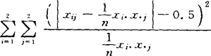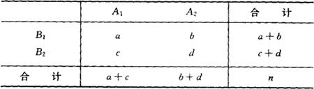 假设检验的一种。 用于检验两个变量是否独立。皮尔逊卡方统计量的重要应用。 X有R个表征值(状态)A1,A2,…,AR;Y有C个表征值:B1,B2,…,BC,二元类别变量(X,Y)定义在同一总体上。随机抽取n个个体,将观测资料汇总在R×C的列联表上(如下表)。欲检验的统计假设H0:X与Y是独立的;H1:H0不真。表中每格内数字xij是X取Ai且Y取Bj的次数,xi.= xij,x.j= xij,n= xi.= x.j= xij。 检验统计量为χ2= ,在n→∞时,它的极限分布是χ2分布,自由度为(R-1)(C-1)。对给定的显著性水平α,查得χ2分布的右尾α分位点 ;(R-1)(C-1)。 当观测值 > ;(R-1)(C-1)时,拒绝H0。这里的检验需要大样本。 当R=C=2时,由上式给出的χ2统计量需要修正(称为雅茨连续性校正)为χ2= ,或用χ2统计量的简捷算法:χ2= ,式中字母含义见2×2列联表所示。注意,此时χ2分布的自由度为1。 R×C列联表
