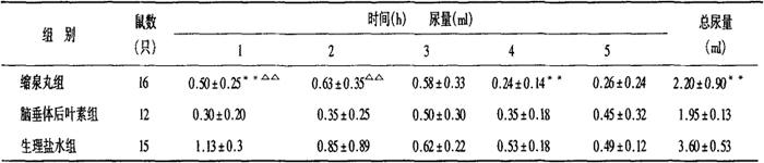 释义 | 益智仁 乌药 山药 【中医理论】 乌药、益智仁各等分,为末,酒煎山药末为糊,丸桐子大,每服70丸,盐酒或米饮下。又名缩泉丸,载于《妇人良方》,用于下无虚冷,小便频数,及小儿遗尿。肾与膀胱虚寒,不能约束水液而小便频数,治当一方面温散肾与膀胱之寒,一方面固肾以缩小便频数。益智仁辛温气香,补火生土,能补虚散寒而缩小便。乌药行散“膀胱肾间冷气”。两药合用,温肾缩便,使下焦寒去,加山药固肾益脾,肾与膀胱的功能恢复,则便数遗尿自可痊愈。 【药理研究】 抗利尿作用]1] 将药品缩泉丸研末,过120目筛,用生理盐水配成30%浓度的混悬液进行实验。 1.对正常大鼠24h尿量的影响 选用200~230g健康雄性大鼠,按体重平均分为缩泉丸和生理盐水组。先分别给药灌胃3d,每天1次,生理盐水组同时给予等量生理盐水。末次给药后按其下腹,排尽尿液,放入代谢笼内,收集24h内尿量,结果见表12-27-1。 表12-27-1 缩泉丸对正常大鼠24h尿量的影响(x±s) 表12-7-1结果显示,缩泉丸对正常大鼠24h尿量与生理盐水组比较,差异无显著性。 2.对水负荷大鼠尿量的影响 选用200~230g健康雄性大鼠,按体重随机分为缩泉丸、脑垂体后叶素和生理盐水组,缩泉丸组灌胃给药3d,剂量同前,脑垂体后叶素和生理盐水组同时给予等量生理盐水,末次给药后各组均禁食15h,缩泉丸组再次给药,15min后各组均以3ml/100g的5%葡萄糖生理盐水灌胃做水负荷,10min后脑垂体后叶素组于腹腔注射给予脑垂体后叶素,剂量为0.2U/100g。然后按其下腹部,排尽尿液,放入代谢笼内,收集5h内尿量。结果见表12-27-2。 表12-27-2 缩泉丸对水负荷大鼠尿量的影响(x±s) 与生理盐水组比较:* *P<0.01;与脑垂体后叶素组比较:△△P<0.01 上表结果显示,缩泉丸和脑垂体后叶素对水负荷大鼠均有显著的抗利尿作用,缩泉丸组与脑垂体后叶素比较,总尿量差异无显著意义;与生理盐水组比较,1h、4h以及总量均有非常显著性差异。 3.对大白尿中K+、Na+、Cl-含量的影响 选用健康雄性大鼠,按体重随机分为缩泉丸组和生理盐水组,方法同前,收集5h总尿量,用火焰光度计测K+、Na+离子含量,用银滴定法测定氯离子含量。结果见表12-27-3。 表12-27-3 缩泉丸对大鼠尿中K+、Na+、Cl-含量的影响( 表12-27-3结果显示,缩泉丸在抗利尿的同时,Na+,Cl-离子的排出也相应减少,与生理盐水组比较,差异有非常显著性。但K+的排出则增多,与生理盐水组比较,差异有非常显著性。 4.对加用利尿药大鼠尿量的影响 选取200~230g健康雄性大鼠24只,按体重随机分为缩泉丸组和生理盐水组。缩泉丸组先灌胃给药3d,剂量同前,生理盐水组同时给予等量盐水。末次给药后各组均禁食15h,缩泉丸组再次给药,15min后分别灌服含有氨体舒通(剂量为20mg/kg)的5%葡萄糖生理盐水(3ml/100g),然后按其下腹,排尽尿液,放入代谢笼内,收集5h内每小时尿量。结果见表12-27-4。 表12-27-4 缩泉丸对加用利尿药大鼠尿量的影响( 上表结果显示,缩泉丸对氨体舒通有抗利尿作用,其总尿量与生理盐水组比较,有显著性差异。 5.对水负荷小鼠尿量的影响 选用健康雄性小鼠,按体重随机分为缩泉丸组和生理盐水组,实验方法同前,观察5h总尿量。结果见表12-27-5。 表12-27-5 缩泉丸对水负荷小鼠尿量的影响( 上表结果显示,缩泉丸对水负荷小鼠具有抗利尿作用,与生理盐水组比较,差异有显著性。 上述研究结果表明,缩泉丸对大鼠、小鼠和加用利尿药大鼠均有显著的抗利尿作用,但该方对正常未加水负荷大鼠尿量无影响,其原因有待进一步研究。缩泉丸的抗利尿作用,除表现在尿量明显减少外,其同时Na+、Cl-离子的排出也明显减少,K+的排出增加,提示缩泉丸的抗利尿作用,有可能是通过保Na+来实现的。中医肾虚多尿,与肾上腺皮质功能减退、醛固酮分泌减少有关,缩泉丸的保Na+排K+作用与醛固酮相似,提示该方的作用与机制,有可能是通过提高肾上腺皮质功能,增加醛固酮的分泌来实现,但尚需进一步研究。 【毒理研究】 急性毒性实验 选取25~30g健康小鼠60只,雄雌各半,随机分为20g/kg、15g/kg、10g/kg3个剂量组,相当于人体临床用量的100、75、50倍。每组10只,每日分别灌胃以上剂量1次,连续2d,观察7d毒性反应,结果全部存活,未见异常表现[1]。 【临床应用】 1.治疗遗尿 应用桑螵蛸散缩泉丸加减治疗遗尿症15例。处方炙桑螵蛸、仙灵脾、覆盆子、山药各15g,益智仁、党参、芡实各20g,熟附片8g,乌药10g,煅龙骨、煅牡蛎各30g,鸡内金9g。10岁以下减半。每日1剂早晚分服,头煎应于每晚7时以前服下。15例患者年龄8~19岁,以15岁以下为多;病程5年以内3例,5~12岁9例,12~16年3例;服药20剂以上3例,30剂以上7例,40剂以上5例。治疗结果:治愈11例,观察6个月不再遗尿;好转4例[2]。 张正林[3]以加味缩泉汤治疗遗尿症25例,处方:茯苓10~50g,桑螵蛸5~30g,乌药3~12g,山药、益智仁各5~20g,结果:全部治愈。禹亚红[4]针药并用治疗遗尿100例,分型辨治:下堤虚寒用桑蛸散、合巩堤丸加减;肺脾气虚用补中益气汤、缩泉丸加减;肝经郁热用龙胆泻肝汤加减,配合针刺治疗。结果总有效率96%。杜氏[5]治疗遗尿症41例,治疗组采用中药益智止遗合剂(桑螵蛸、益智仁、黄芪、山药各等份,补骨脂、细麻黄、石菖蒲、远志肉各等份),水煎浓缩250ml,学龄前儿童口服20ml/次,学龄儿25~30ml/次,日2次;对照组用丙咪嗪。结果:两组总有效率分别为73.2%、48.8%(P<0.05);治疗后轻、中、重症比率亦有显著差异(P<0.05)。另有报道于氏[6]