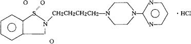 C19H23N5O3S·HCl=437.94 CAS-92589-98-5 CAS-95847-70-4(ipsapirone) 2-[4-[4-(2-嘧啶基)-1-哌嗪基]丁基]-1,2-苯并异噻唑3(2H)-酮,1,1-二氧化物,单盐酸盐。 2-[4-[4-(2-pyrimidinyl)-1-piperazinyl]butyl]-1,2-benzisothiazol-3(2H)-one,1,1-dioxide,monohydrochloride. 抗焦虑药。 Ipsapirone Hydrochloride,BAY q 7821,TVXQ 7821. INN & BAN(Ipsapirone),USAN.