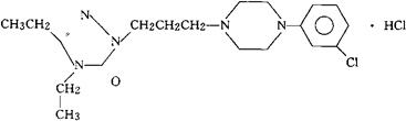 释义 | 盐酸依托哌酮 C19H28ClN5O·HCl=414.38 CAS-57775-22-1 CAS-52942-31-1(etoperidone) 2-[3-[4-(3-氯苯基)-1-哌嗪基]丙基-4,5-二乙基-2,4-二氢-3H-1,2,4-三唑-3-酮单盐酸盐。 2-[3-[4-(3-Chlorophenyl)-1-piperazinyl]propyl]-4,5-diethyl-2,4-dihydro-3H-1,2,4-triazol-3-one,monohydrochloride. 1-[3-[4-(间-氯苯基)-1-哌嗪基]丙基]-3,4-二乙基-△2-1,2,4-三唑啉-5-酮单盐酸盐。 1-[3-[4-(m-Chlorophenyl)-1-piperazinyl]propyl]-3,4-diethyl-△2-1,2,4-triazolin-5-one-monohydrochloride. 镇静药,抗抑郁药。 Etoperidone Hydrochloride,McN-A-2673-11,Etonin. INN(Etoperidone),USAN. |