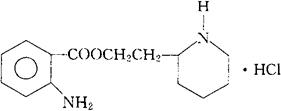 C14H20N2O2·HCl=284.78 CAS-87-21-8(piridocaine) 2-氨基苯甲酸2-哌啶乙酯,盐酸盐。 2-Piperidineethanol 2-aminobenzoate,hydrochloride. 氨茴酸2-(2-哌啶基)乙酯盐酸盐。 2-(2-Piperidyl)ethyl anthranilate hydrochloride. 脊髓麻醉药。 Piridocaine Hydrochloride,Lucaine,Pt 14. INN(Piridocaine),USAN,MI.  |