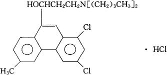 C26H30Cl2F3NO·HCl=536.89 CAS-36167-63-2 CAS-69756-53-2(halofantrine) CAS-66051-63-2[(±)-halofantrine] 1,3-二氯-α-[2-(二丁基氨基)乙基]-6-(三氟甲基)-9-菲甲醇,盐酸盐。 9-Phenanthrenemethanol,1,3-dichloro-α-[2-(dibutylamino)ethyl]-6-(trifluoroomethyl)-,hydrochloride. 1,3-二氯-α-[2-(二丁氨基)乙基]-6-(三氟甲基)-9-菲甲醇盐酸盐。 1,3-Dichloro-α-[2-(dibutylamino)ethyl]-6-(trifluoromethyl)-9-phenanthrenemethanol hydrochloride. 抗疟药。 盐酸卤泛曲林。 Halofantrine Hydrochloride,WR-171669. INN,BAN(Halofantrine),USAN.