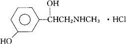 C9H13NO2·HCl=203.67 CAS-61-76-7 (-)-间-羟-α-[(甲氨基)甲基]苯甲醇盐酸盐。 (-)-m-Hydroxy-α-[(methylamino)methyl]benzyl alcohol hydrochloride. α-肾上腺素受体激动药。可收缩血管、升高血压。 用于低血压的抢救。 盐酸苯肾上腺素,麦撒苯同肾上腺素,新福林,新辛内弗林,盐酸去甲羟麻黄碱,盐酸苯福林。 Phenylephrine Hydrochloride,Propadrine,Adrianol,Isephrine,Biomydrin. 盐酸去氧肾上腺素注射液。 BP,FP,JP,USAN,USP,MI.