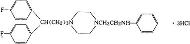 释义 | 盐酸双氟那嗪 C28H33F2N3·3HCl=558.97 CAS-5522-33-8 1-(2-苯胺基乙基)-4-[4,4-双(对-氟苯基)丁基]哌嗪三盐酸盐。 1-(2-Anilinoethyl)-4-[4,4-bis(p-fluorophenyl)butyl]piperazine trihydrochloride. 中枢兴奋药。 盐酸二氯那嗪。 Difluanine Hydrochloride,Difluanazine Hydrochloride. INN(Difluanazine),USAN. |