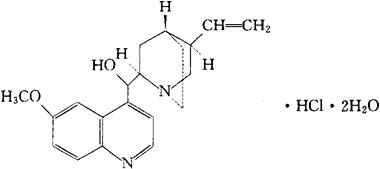 C20H24N2O2·HCl·2H2O=396.92 CAS-130-95-0(quinine) (8α,9R)-6′-甲氧脱氧辛可宁-9-醇盐酸盐二水化合物。 (8α,9R)-6′-Methoxycinchonan-9-ol hydrochloride dihydrate. 奎宁盐酸盐二水化合物。 Quinine monohydrochloride dihydrate. 抗疟药。用于控制疟疾的症状。 盐酸规宁,盐酸金鸡纳碱。 Quinine Hydrochloride,Quinine Chloride. 盐酸奎宁片,盐酸奎宁注射液。 BP,NF,USAN,MI.