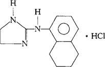 释义 | 盐酸曲马唑啉 C13H17N3·HCl=251.76 CAS-3715-90-0 CAS-1082-57-1(tramazoline) 4,5-二氢-N-(5,6,7,8-四氢-1-萘基)-1H-咪唑-2-胺,单盐酸盐。 1H-Imidazol-2-amine,4,5-dihydro-N-(5,6,7,8-tetrahydro-1-naphthalenyl)-,monohydrochloride. 2-[(5,6,7,8-四氢-1-萘基)氨基]-2-咪唑啉单盐酸盐。 2-[(5,6,7,8-Tetrahydro-1-naphthyl)amino]-2-imidazoline monohydrochloride. 拟交感神经作用药,血管收缩药。 Tramazoline Hydrochloride,Toramazoline Hydrochloride,Biciron,Rhimogutt,Rhinospray. JAN,USAN. |