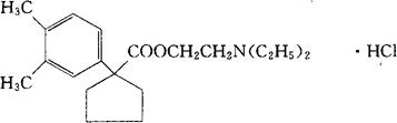C20H31NO2·HCl=353.92 CAS-1950-31-8 CAS-561-79-5(metcaraphen) 1-(3′,4′-二甲基苯基)-1-环戊烷羧酸2-二乙氨基乙酯盐酸盐。 1-(3′,4′-Dimethylphenyl)-1-cyclopentanecarb oxylic acid 2-diethylaminoethyl ester,hydrochloride. 1-(3′,4′-二甲基苯基)-1-环戊烷羧酸2-二乙氨基乙酯盐酸盐。 2-Diethylaminoethyl 1-(3′,4′-dimethylphenyl)-1-cyclopentanecarboxylate,hydrochloride. 解痉药,抗胆碱药。 苯环戊酯盐酸盐,二甲卡美芬盐酸盐,盐酸二甲喷他芬。 Metcaraphen Hydrochloride. USAN,MI.  |