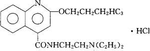C20H29N3O2·HCl=379.93 CAS-61-12-1 2-丁氧-N-[2-(二乙氨基)乙基]-4-辛可宁酰胺单盐酸盐。 2-Butoxy-N-[2-(diethylamino)ethyl]-4-cinchoninamide monohydrochloride. 局部麻醉药。用于表面麻醉、阻滞麻醉等。 盐酸待布卡因(台),盐酸纽泼卡因,盐酸苏夫卡因,盐酸沙夫卡因。 Dibucaine Hydrochloride,Nupercaine Hydrochloride,Cinchocaine Hydrochloride. 盐酸辛可卡因注射液。 BAN,BP,JP,USAN & USP(Dibucaine Hydrochloride),MI.