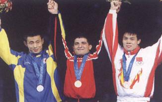 盛泽田(1971~ ),1992年、1996年和2000年3届奥运会铜牌得主,中国男子古典式摔跤队主教练。 他的父亲以及两个哥哥都是习武之人,受其影响,盛泽田从6岁就迷上了武术;先是练武术套路,14岁时到淮北市业余体校改学中国摔跤;1986年进入安徽省体工队继续深造;1987年2月考上了上海体院改学古典式摔跤;1996年毕业后留在体院任教和当教练。在此期间,盛泽田先后参加了第二十五届巴塞罗那、第二十六届亚特兰大和第二十七届悉尼奥运会,均取得了第3名的骄人成绩;打破了中国摔跤零的记录,从而确立他在中国第一跤王的地位。  2000年9月27日盛泽田(右一)获得悉尼奥运会古典式摔跤58公斤级铜牌。 |