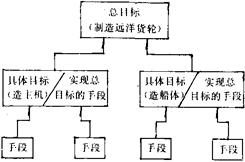 释义 | 目标—手段结构分析法 目标往往是由总目标(或称大目标、上一级目标)到具体目标(或称小目标、下一级目标),所构成的多层次体系,而下一级目标又是实现上一级目标的手段。 这样就构成了一个目标——手段链。如一个船厂要造一艘远洋货轮,这是船厂的总目标。为了实现这一总目标,各工段都相应承担任务,有的负责造主机,有的负责造船体。这些任务就是具体目标,同时也是实现总目标的条件和手段。 如图所示。 通过目标——手段结构进行决策和管理,可使决策者和管理者眼界开阔,可以从全局来观察问题,比较容易区别实质问题与表面现象。 |