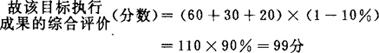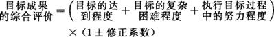是对目标管理执行的结果进行评定。 目标成果的评定取决于以下三个因素:即目标达到的程度、目标的复杂程度和执行目标过程中的努力程度,而以目标达到的程度为重点。目标管理成果的综合评价公式为:  式中:三个评定因素的比重一般为5∶3∶2,即“达到程度”为5,“复杂困难程度”为3,“努力程度”为2。 但“达到程度”所占比重可随职级提高而加大; 三个评定因素中,每一个因素都按A、B、C三个等级进行区别; 修正系数是指在完成目标过程中,因外部条件的突然变化,而对目标成果的影响所应当给予调整的数值。其“+”号表示不利外部条件的出现,而目标执行者无法排除时,致使目标成果下降的情况,“-”号表示出现有利外部条件,而目标执行者并未努力,致使目标成果上升的情况。 例如:某一成本降低目标项目,其成果评定的三个因素及等级和修正系数如下表:  现有某职级的目标执行者,经初步评定其成果:“达到程度”是A级;“目标困难程度”是B级;“努力程度”是B级。  |