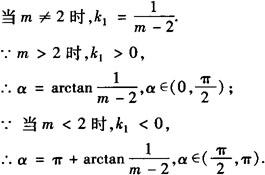 若a=b,则a=b=3, ∴直线方程为x+y—3=0; 若a=—b,则a=—1,b=1, ∴直线方程为x—y+1=0. ∴满足条件的直线有3条,故选C. 点评 本题引起分类讨论的因素有两个方面:一是直线是否过原点;二是|a|=|b|,则a=±b.容易漏解的原因是忽视直线过原点的情况. 例3 求经过两点A(2,1)和B(m,2)(m∈R)的直线l的斜率,并求出其倾斜角α及其取值范围. 解 ∵当m=2时,x1=x2=2, ∴直线l垂直于x轴,故其斜率不存在,此时,倾斜角