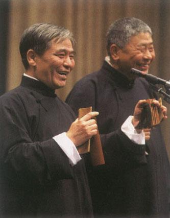 相声是中国曲艺中最具喜剧特征和幽默品格的一种,因而也是影响最大、最受听众观众欢迎的一种。 可以说,在中国,地不分东南西北,人无分男女老幼,没有不知道相声,不喜欢相声的。 相声的表演形式有三种,早期主要是一个人说演的“单口相声”,类似于讲笑话或幽默故事的脱口秀。后来出现了两个人合作表演的“对口相声”。 其中一个人为甲方,称作“逗哏”,另一人为乙方,称作“捧哏”。 “对口相声”的表演是在对话中制造笑料,因所演节目的题材内容的不同,把甲主说、乙附和的节目称为“一头沉”;把甲乙双方争论的节目称作“子母哏”;把有大段诵说或韵诵表演的节目称作“贯口活”;而把仿学唱戏唱歌的内容为主的节目称作“柳活”。另外,还有一种三人或三人以上的多人表演的形式叫做“群口相声”,表演时一个人“逗”,多人“捧”。 在这三种形式之中,以“对口相声”的说演最为常见和普遍,是相声艺术样式的主体。 相声表演讲求“说、学、逗、唱”,即不但口齿要清,而且要善于摹仿各种人和事物以及声音效果,更要擅长制造笑料,即“抖包袱”,同时还要求嗓子好,能学唱各种戏曲唱腔和流行曲调。由于相声表演全仗嘴的功夫,故上述四种基本技巧一般要求必须具备。 但实际上演员们各有擅长,各有风格。  传统相声表演 |