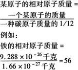释义 | 相对原子质量 以一种碳原子质量的1/12为标准,其他原子的质量跟它相比较所得到的比,作为这种原子的相对原子质量(符号为Ar). 【说明】 1.作为相对原子质量标准的碳原子叫做碳12,是含有6个质子和6个中子的碳原子,它的质量的1/12等于1.66× 10-27kg. 2.质子的质量(1.6726×10-27kg)和中子的质量(1.6749×10-27kg)约相等,都约等于碳12原子质量的1/12,也就是跟一个氢原子的质量近似相等.电子的质量很小,仅约相当于质子或中子质量的1/1836.因此,原子的质量主要集中在原子核上. 3.相对原子质量约等于质子数加中子数. |