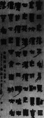 【简介】: 淸·金农书于乾隆十七年(1752)。纸本。漆书。凡七行,共七十二字。175.8×58.4cm。故宫博物院藏。刊于日本《中国书道全集》(八)。