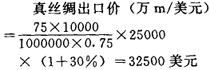 释义 | 真丝绸(练、漂坯绸)出口价格 是真丝绸的出口价格。 其计算方法,应与生丝出口价格计算方法相同。即真丝绸出口价格=真丝绸出口成本+出口利润。 其中的真丝绸出口成本,是真丝绸进货成本加出口费用减去出口退税后所构成的成本。出口利润,是经营公司年度计划规定的利润率按出口成本计算的利润。 但这种计算价格,必须经与生丝出口价核查,即真丝绸出口价绝对不能低于生丝出口价计算其用丝量的价格。如出口真丝绸1万m,用生丝1t,而出口生丝每吨2.8万美元,其出口真丝绸价每米(m)必须在2.8美元以上,绝对不能低于2.8美元。这因为真丝绸是用生丝为原料加工制成的,其生产成本除原料费用外,还需加工费和税利。如果我国出口真丝绸低于生丝出口价出口,虽有可能还是有利可图(因生丝出口价高于织绸用丝价),但会引起进口我国生丝加工绸缎的消费或出口国家的丝织厂发生危机而停产停进我国生丝,而且还会引起对真丝绸的进口限制,等等。 这不仅由于我国真丝绸出口价低遭受损失,而且还要引起比低价损失还大的减少生丝、真丝绸出口量而引起严重损失。为此,不论真丝绸出口计算价(原料、生产成本加税利)是低于或平于出口生丝(按出口真丝绸用量为准)价,而真丝绸出口价必须高于其生丝用量的生丝出口价。一般最低应高于出口生丝价的30%。当然,如真丝绸出口计算价高于出口生丝价30%的更好。 因此,计算真丝绸出口价,除出口成本加利润的计算价外,还必须以出口真丝绸每米用丝量的出口价来核实,但为简化计算起见,习惯上可用真丝绸每m用丝量的出口价,加应高于出口丝价%来计算。如计算真丝绸出口价的公式是: 如该真丝绸按成品规格每米(m)75g,每吨(t)生丝出口价28000美元,高于生丝价30%。 以数代入则: 即每米3.25美元(式中0.75是练折,即成品重75g,则其折合生丝量为100g)。这种计算公式中的高于生丝价%是重要的关键数,其余均是按实际填入即可。 至于高于生丝价%的关键数,一般最低是30%,并可根据真丝绸的不同品种生产工艺难易、每米用丝量多少的真丝绸出口计算价格和国际丝绸市场上对该品种的供需状况适当增加这个关键数。真丝绸品种很多,在计算出口价时,可根据生产规格、工艺不同分类选定几个标准品种核定出口价格,其余品种可按克重根据标准品种的出口价格折算。 |
