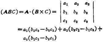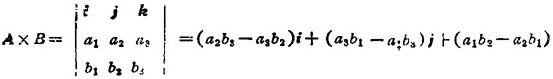 释义 | 矢量代数 矢量 1.6.1 矢量加、减、数乘运算 A+B=(α1+b1,a2+b2,…,an十bn) A-B=(α1-b1,a2-b2,…,an-bn) k·A=(ka1,ka2,…,kan) k为任意实数 A+B=B+A A+(B+C)=(A+B)+C m(nA)=(mn)A=n(mA) (m+n)A=mA+nA m(A+B)=mA+mB m、n为纯量 1.6.2 矢量乘法 (1)标量积(数量积、点积、内积) A·B=a1b1+a2b2+…+anbn 设|A|=a,|B|=b,A、B两矢量的夹角为θ,则标量积A·B为一纯量。记为 A·B=abcosθ (0≤θ≤π) 有 A·B=B·A A(B+C)=A·B+A·C (2)三维矢量的矢量积(叉积、外积) 设A=(a1,α2,a3),B=(b1,b2,b3),|A|=a,|B|=bA、B两矢量的夹角为θ,则定义A×B为两矢量的矢量积(或称叉积、外积)。它是一个矢量,其长度为以A、B为边的平行四边形的面积,方向垂直于A、B两矢量,且A、B、A×B构成右手系(图1.1-1) |A×B|=absinθ (0≤θ≤π) 在直角坐标系中,A=a1i+a2j+a3k,B=b1i+b2j+b3k,则 k,i、j、k为直角单位向量。 A×A=0 A×B=-B×A A×(B+C)=A×B+A×C (3)三个矢量的混合积 设A=(a1,α2,α3),B=(b1,b2,b3)C=c1,c2,c3)为三个矢量,则定义它们的混合积为: 混合积具有性质: A·(B×C)=(A×B)·C (ABC)=(BCA)=(CAB)=-(ACB)=-(BAC)=-(CBA) 混合积(ABC)是一个数,其绝对值等于以A、B、C为边的平行六面体的体积。 (4)三重矢量积 A×(B×C)=(A·C)B-(A·B)C (A×B)×C=(A·C)B-(B.C)A 采用A,B,C轮换法还可推出其余两个同类公式。 但A×(B×C) (5)矢量夹角与距离 |