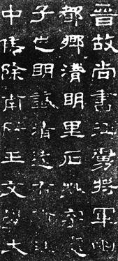 隶书。正文十行,阴九行,右侧四行,行皆二十字;左侧四行,行二十一字。其书规整匀称,笔势流畅秀劲,为晋隶中守汉法者。