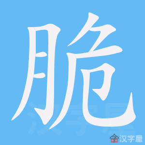 cuì ❶形容易断裂、破碎(跟“韧”相对)。这种纸又薄又脆|塑料薄膜一老化就发脆。 →❷形(感情)受挫折后易波动;不坚强。脆弱 →❸形(食物)虽较硬但容易咬断、咬碎。这种苹果甜脆可口|芝麻糖受了潮,不脆了。 ⇒❹形(声音)清亮。嗓音又脆又甜 ⇒❺形(说话、做事)利落,不拖泥带水。这人办事真脆|干脆用法说明㊀统读 cuì。㊁右下是“⺋”,不是“巳” “己”或“已”。