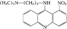 C18H20N4O2=324.38 CAS-4533-39-5 9-[[3-(二甲氨基)丙基]氨基]-1-硝基吖啶。 9-[[3-(Dimethylamino)propyl]amino]-1-nitroacridine. N,N-二甲基-N′-(1-硝基-9-吖啶基)-1,3-丙烷二胺。 N,N-Dimethyl-N′-(1-nitro-9-acridinyl)-1,3-propanediamine. 抗肿瘤药。 硝基可润。 Nitracrine,Ledakrin,C283,NSC 247561. INN,USAN.  |