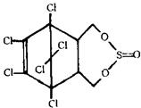 广谱有机氯杀虫剂。 化学名称:6,7,8,9,10,10-六氯-1,5,5a,6,9,9a六氢-6,9-甲撑-2,4,3-苯并〔e〕二氧硫庚3-氧化物。化学结构式如下。工业品浅棕色结晶固体,具有二氧化硫的气味,是两种异构体的混合物,a异构体约含70%,β异构体含30%。 熔点70~100℃,密度1.745.25℃时蒸气压133.322×10-5Pa。 不溶于水,较易溶于有机溶剂。对日光稳定,遇酸、碱及湿气分解,放出二氧化硫。 对铁有腐蚀性。对昆虫有触杀和胃毒作用,无内吸性。 可用于防治棉、玉米、烟草、果树等作物上的蚜虫、棉铃虫、食心虫、黏虫、卷叶虫。 工业品对大鼠口服LD50为80~110mg/kg,a异构体为76mg/kg,β异构体为240mg/kg。在植物体内半衰期3~7天,在人、畜体内不积累。对鱼高毒。