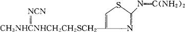 C10H16N8S2=312.41 CAS-69014-14-8 N″-氰基-N-[2-[[[2-[(二氨亚甲基)氨基]-4-噻唑基]甲基]硫代]乙基]-N′-甲基胍。 Guanidine,N″-cyana-N-[2-[[[2-[(diaminomethylene)amino]4-thiazolyl]-methyl]thio]ethyl]-N′-methyl-. 2-氰基-1-[2-[[[2-[(二氨亚甲基)-氨基]-4-噻唑基]甲基]硫代]乙基]-3-甲基胍。 2-Cyano-1-[2-[[[2-[(diaminomethylene)amino]-4-thiazolyl],methyl]thio]ethyl]-3-methylguanidine. 组胺H2-受体阻滞药,抗组胺药。 Tiotidine,ICI125,211. INN,USAN.  |