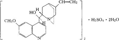 释义 | 硫酸奎宁[典] (C20H24N2O2)2·H2SO4·2H2O=782.96 CAS-6119-70-6 CAS-804-637(无水) 奎宁硫酸盐(2∶1)二水化合物。 CAS-6591-63-5 Quinine sulfate(2∶1)(salt)dihydrate. 抗虐药。用于控制虐疾的症状。 硫酸鸡纳硷,奎宁硫酸盐,硫酸金鸡纳霜,硫酸奎尼丁,硫酸奎宁(台)。 Quinine Sulfate,Quininae Sulfas(台),Chinine Sulfate,Quinamin,Quine,Quinite. 硫酸奎宁片,硫酸奎宁锭(台)。 BP,IP,JP,USAN,USP,USSRP,MI. |