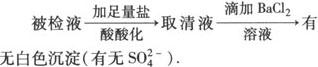 释义 | 硫酸根离子()的检验 检验 注意 检验 (1)Ag+干扰:用BaCl2溶液或盐酸酸化时防止Ag+干扰,因为:Ag++Cl—=AgCl (2) 如:BaCO3+2H+=H2O+CO2Ba↑(2+ 但不能用HNO3酸化,同理所用钡盐也不能用Ba(NO3)2溶液,因为在酸性条件下, 例(2004·江苏·4)下列关于浓硫酸的叙述正确的是( ). A.浓硫酸具有吸水性,因而能使蔗糖炭化 B.浓硫酸在常温下可迅速与铜片反应放出二氧化硫气体 C.浓硫酸是一种干燥剂,能够干燥氨气、氢气等气体 D.浓硫酸在常温下能够使铁、铝等金属钝化 解析 浓硫酸具有脱水性,能使蔗糖炭化;浓硫酸在加热条件下与铜片反应放出二氧化硫气体;浓硫酸是一种干燥剂,但不能够干燥氨气、硫化氢等气体;浓硫酸具有氧化性,在常温下能够使铁、铝等金属钝化. 答 D. |