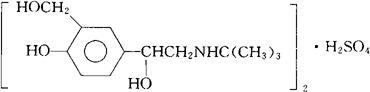 (C13H21NO3)2·H2SO4=576.70 CAS-51022-70-9 CAS-18559-94-9(albuterol) α′-[[(1,1-二甲乙基)氨基]甲基]-4-羟基-1,3-苯二甲醇硫酸盐(2∶1)。 α-[[(1,1-Dimethylethyl)amino]methyl]-4-hydroxy1,3-benzenedimethanol,sulfate(2∶1)(salt). α′-[(叔-丁氨基)甲基]-4-羟基-间-二甲苯-α,α-二醇硫酸盐(2∶1)。 α1-[(tert-Butylamino)methyl]-4-hydroxy-m-xyleneα,α′-diol sulfate(2∶1)(salt). 支气管扩张药,β2肾上腺素受体激动药。用于支气管哮喘、喘息型支气管炎、肺气肿患者的支管气痉挛等。 硫酸舒喘灵,硫酸阿布叔醇,硫酸舒喘宁喘乐宁,硫酸沙丁胺醇。 Albuterol Sulfate,Sch 13949W Sulfate,Sabuterol Sulfate,Aeriolin,Broncovaleas,Venetlin,Ventolin. 硫酸沙丁醇片(硫酸舒喘灵片),硫酸舒喘宁注射液,喘乐宁溶液剂,气雾剂。 BP,IP,USAN,MI.