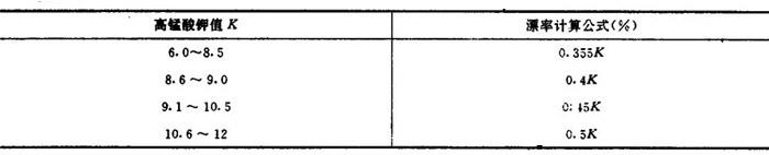 表1-9-4 不同高锰酸钾值下的用氯量计算