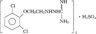 [C9H12Cl2N4O]2·H2SO4=624.33 CAS-551-48-4 CAS-5001-32-1(guanoclor) 2-[2-(2,6-二氯苯氧基)乙基]-肼羧亚氨基酰胺硫酸盐。 2-[2-(2,6-Dichlorophenoxy)ethyl]-hydrazinecarboximidamide,sulfate(2∶1). [[2-(2,6-二氯苯氧)乙基]氨基]胍硫酸盐(2∶1)。 [[2-(2,6-Dichlorophenoxy)ethyl]amino]guanidine sulfate(2∶1). 抗高血压药。用于原发性、肾性、恶性高血压。 Guanoclor Sulfare,3-01029,NSC-108163,Vatensol. INN & BAN(Guanochlor),USAN,MI.  |