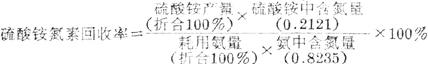 释义 | 硫酸铵氮素回收率 指硫酸铵中含氮量占原料(氨)中含氮量的比重。 用百分数表示。反映硫酸铵生产过程中氮的回收程度的指标。计算公式为: 式中:0.2121指每单位100%硫酸铵的理论含氮量,0.8235指每单位100%氨的理论含氮量。 硫酸铵氮素回收率愈高,说明生产过程中氮的回收程度愈好。 |