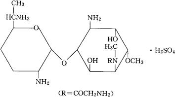 C17H35N5O6·2H2SO4=601.64 CAS-72275-67-3 4-氨基-1-(2-氨基-N-甲基乙酰胺基)-1,4-二脱氧-3-O-(2,6-二氨基-2,3,4,6,7-五脱氧-β-L-来苏-庚吡喃糖基)-6-O-甲基-L-手性-肌醇硫酸盐(1∶2)。 4-Amino-1-(2-amino-N-methylacetamido)-1,4-dideoxy-3-0(2,6-diamino-2,3,4,6,7-pentadeoxy-β-L-lyxo-heptopyranosyl)-6-O-methyl-L-chiro-inositol sulfate(1∶2). 抗菌药。 硫酸阿司米星。 Astromicin Sulfate,Abbott-44747. USAN.