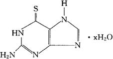 释义 | 硫鸟嘌呤[中] C5H5N5S·xH2O=167.20(无水) CAS-154-42-7 CAS-5580-03-0(半水合物) 2-氨基-嘌呤-6(1H)-硫酮。 2-Amino-purine-6(1H)-thione. 抗肿瘤药。用于各型白血病。 6-硫代鸟嘌呤。 Thioguanine,Tioguanine,Tabloid. 硫鸟嘌呤片。 INN,BAN,BP,DCIT,NFN,USAN,USP,MI. |