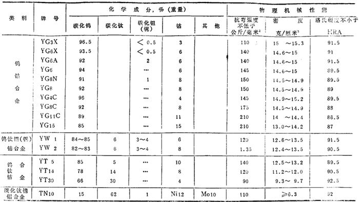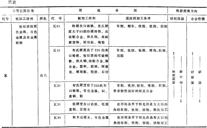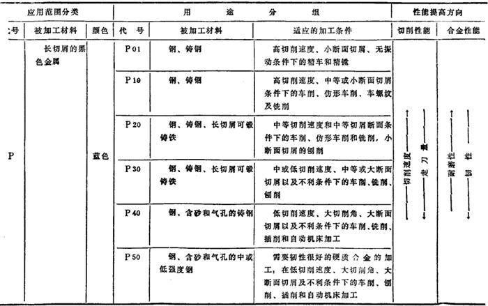 释义 | 硬质合金的分类 硬质合金可以采取不同的原则进行分类。根据硬质合金的应用范围,通常可以将其分为切削工具用硬质合金、硬质合金模具、硬质合金量具及耐磨材料和矿山石油地质用硬质合金4大类。(详见株州硬质合金厂编著《硬质合金的使用》一书)。由于应用范围不同,要求硬质合金具有不同的化学成分、组织结构和物理机械性能。 按照化学成分及使用特性,硬质合金又可以区分为不同牌号。我国目前通用的硬质合金牌号规定于YB849-75(其化学成分和物理机械性能见表103),共包括钨钴、钨钛钴、钨钛钽(铌)钴合金和碳化钛镍钼合金等4个类别16种牌号。 表103 硬质合金牌号、化学成分和物理机械性能(YB849-75) 注:X——表示由细颗粒碳化钨组成的合金;C——表示由粗颗粒碳化钨组成的合金;A——表示加少量碳化钽的合金;N-表示加少量碳化铌的合金。 钨钴合金(YG类) 主要成分为碳化钨(WC)和钴(Co),某些牌号中也加入少量碳化钽(TaC)或碳化铌(NbC)以使晶粒细化,提高其硬度和红硬性。这类合金同其他硬质合金相比具有较高的抗弯强度和韧性、较大的导热系数、较好的焊接性能和磨削性能,因此主要用于铸铁、有色金属及其合金等脆性材料的切削加工,还在拉丝模、冷镦模、冲裁模、冷挤模、耐磨零件和量具等方面用以代替工具钢,可大大提高工模具寿命。对于矿山、石油、地质用钻头、凿岩机钎头、截煤机截齿等地质钻探、凿岩工具和采掘工具也普遍采用钨钴类粗颗粒合金来制造。 钨钴合金中,YG6X由于加入少量碳化钽(铌)细化了晶粒,碳化钨晶粒不大于5微米,其硬度和耐磨性较YG6都有提高,但抗弯强度略有降低。YG6X适于冷硬铸铁、耐热合金钢的精加工、半精加工,也可用于普通铸铁的精加工以及钢材、有色金属的细丝拉拔模。 YG6A亦属细颗粒合金,其碳化钽含量达2%。随著碳化钽含量的增加,除进一步提高了硬度和耐磨性外,红硬性和抗粘附性能也有改善,使合金具有一定的通用性,即可用于冷硬铸铁、有色金属及其合金的半精加工,也可用于高锰钢、淬火钢及合金钢的半精加工和精加工。 YG8N是较晚纳入标准的合金牌号,其中含有1%碳化铌。因为YG8N红硬性较好,即使高温下,也具有一定的硬度和强度,可用来代替YG6和YG8作为粗加工各种铸铁的通用牌号,特别是在不利条件下粗加工普通铸铁,可锻铸铁、球墨铸铁时,刀具耐用度较YG8提高1倍以上。此外也可用于不锈钢,冷硬铸铁、白口铸铁的粗加工和半精加工,另外还可用米加工某些铁基高温合金。 钨钛钴合金(YT类) 由于加入了碳化钛(TiC),使其耐磨性显著提高,尤其是提高了合金与钢之间的热粘附温度,增强了刀具的抗月牙洼磨损能力,因此主要用于一般钢材的高速切削。但随著耐磨性的提高,其抗弯强度、焊接性能和磨削性能与相同含钴量的钨钴类合金相比显著下降,特别是YT30在焊接和磨削时易于产生裂纹,抗弯强度和韧性较差,只能用于切削条件较为平稳,要求较高硬度和耐磨性时精加工各种钢材以至淬火钢。 钨钛钽(铌)钴合金(YW类) 为改善钨钛钴类合金的性能,在合金中添加适量的碳化钽或碳化铌,能在保证较高硬度和耐磨性的基础上,增强其抗弯强度和韧性,提高粘附温度和抗氧化性,使这类合金具有较好的综合切削性能,既可加工铸铁、有色金属,又可加工一般钢材,也适用于切削高温合金、不锈钢等难加工材料,因此被称为“通用合金”。其中YW1硬度和红硬性较高,通用性较好。YW2,耐磨性稍低于YW1,但抗弯强度和韧性较YW1好,能承受较大冲击载荷。 碳化钛镍钼合金(YN类) 这类合金以碳化钛为主要成分,以镍钼做粘结剂。由于碳化钛较碳化钨具有更高的硬度和熔点(见本书表20),而镍钼的粘结强度又优于钴,因此YN10合金的硬度接近YT30,而抗弯强度,焊接性能和磨削性能均有较大提高和改善,特别是YN10具有较高的红硬性,在1000℃高温下还能进行切削,而且不易与一般工件材料亲和,切削时会形成有自润滑作用的三氧化二钼、镍钼盐酸和氧化钛,因此抗粘附能力强,摩擦系数小,抗积屑瘤和抗月牙洼形成能力大,有利于提高刀具耐用度和工件表面质量,适宜于连续切削条件上精加工各种钢材,尤其是大尺寸淬火钢的精加工。 对于切削工具用硬质合金,1982年我国参考国际标准发布了GB2075—80“切削加工用硬质合金分类、分组代号”,并从1983年10月1日开始实施。标准中将切削加工用硬质合金按其适用加工对象的范围分为三个主要类别,分别以字母P、M、K表示,并规定了不同的颜色标志。 ·P——适于加工长切屑的黑色金属,以蓝色作标志; ·M——适于加工长切屑或短切屑的黑色金属和有色金属,以黄色作标志; ·K——适于加工短切屑的黑色金属,有色金属及非金属材料,以红色作标志。 具体的用途分组如表104所示。 表104 切削加工用硬质合金的应用范围分类和用途分组(GB2075-80) 不利条件系指原材料或带黑皮的铸件或锻件,硬度不匀、切削深度不匀、间断切削以及在有振动的情况下工作等. 主要类别代号和用途分组代号的规定,有利于明确表示其应用范围和适宜的加工条件,特别是考虑到硬质合金新牌号不断增加,而各厂编号方法又不一致,有一个统一的分类代号和分组代号,便于对切削加工用硬质合金进行分类管理,但分类、分组代号并不能代替硬质合金牌号,在符合统一分类、分组原则的前提下,应该进一步区分不同牌