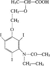 释义 | 碘利扎酸 C15H18I3NO5=673.02 CAS-22730-86-5 2-[2-[3-(N-乙基乙酰氨基)-2,4,6三碘苯氧基]乙氧基]丙酸。 2-[2-[3-(N-Ethylacetamido)-2,4,6-triiodophenoxy]ethoxy]propionic acid. 诊断用药。 碘里西尼酸。 Iolixanic Acid,B-8890. INN,USAN. |