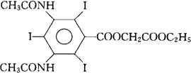 C15H15I3N2O6=700.01 CAS-5714-09-0 (3,5-二乙酰胺基-2,4,6-三碘苯甲酰基氧)醋酸乙酯。 (3,5-Diacetamido-2,4,6-triiodobenzoyloxy)acetic acid ethylester. 乙基(3,5-二乙酰胺基-2,4,6-三碘苯甲酰基氧)-乙酸酯。 Ethyl(3,5-diaetamido-2,4,6-triiodobenzoyloxy)-acetate. 诊断用药。用于支气管造影。 Ethyl Cartrizoate,Win 12901. INN,USAN.