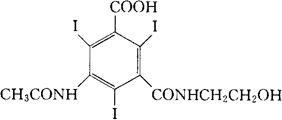 释义 | 碘羟拉酸 C12H11I3N2O5=643.94 CAS-28179-44-4 5-乙酰胺基-N-(2-羟乙基)-2,4,6-三碘间苯二甲氨酸。 5-Acetamido-N-(2-hydroxyethyl)-2,4,6-triiodoisophthalamic acid. 诊断用药。 Ioxitalamic Acid,AG 58107. INN,DCF,USAN. |