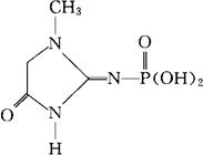释义 | 磷酸肌酐 C4H8N3O4P=193.10 CAS-5786-71-0 (1-甲基-4-氧代-2-咪唑烷亚基)氨基磷酸。 (1-Methyl-4-oxo-2-imidazolidinylidene)phosphoramidic acid. (4,5-二氢-1-甲基-4-氧代-1H-咪唑-2-基)氨基磷酸。 (4,5-Dihydro-1-methyl-4-oxo-1H-imidazol-2-yl)-phosphoramidic acid. 心肌病辅助药,强壮药。 Fosfocreatinine INN,USAN. |
