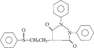 C23H20N2O3S=404.48 CAS-57-96-5 1,2-二苯基-4-[2-(苯基亚硫酰)乙基]-3,5-吡唑烷二酮。 1,2-Diphenyl-4-[2-(phenylsulfinyl)ethyl]-3,5-pyrazolidine dione. (±)-4-(2-苯硫酰苯乙基)-3-氧代-1,2-二苯吡唑烷。 (±)-4-(2-Benzenesulfphenylethyl)-3-dioxo-1,2-diphenylpyrazolidine. 排尿酸药。用于缺血性心脏病、脑血管疾病,防止血栓形成减少心绞痛及心肌梗塞的发病率。 苯磺唑酮,苯磺保泰松,硫氧唑酮。 Sulfinpyrazone,Auturan,Auturidin,Enturen,Sulphinpyrazone. BAN,USAN,USP.  |