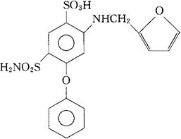 C17H16N2O7S2=424.44 CAS-82666-62-4 2-(糠氨基)-4-苯氧-5-氨磺酰苯磺酸。 2-(Furfurylamino)-4-phenoxy-5-sulfamoylbenzene sulfonic acid. 5-(氨磺酰)-2-[(2-呋喃甲基)氨基]-4-苯氧基苯磺酸。 5-(Aminosulfonyl)-2-[(2-furanylmethyl)amino]-4-phenoxybenzenesulfonic acid. 利尿药。 苏罗酰胺。 Sulosemide. INN,USAN.  |