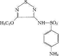 释义 | 磺胺曲唑 C10H12N4O3S2=300.35 CAS-13369-07-8 N1-(4-乙氧-1,2,5-噻二嗪-3-基)氨苯磺酰胺。 N1-(4-Ethoxy-1,2,5-thiadiazol-3-yl)sulfanilamide. 4-氨基-N-(4-乙氧-1,2,5-噻二嗪-3-基)苯磺酰胺。 4-Amino-N-(4-ethoxy-1,2,5-thiadiazol-3-yl)benzen esulfonamide. 磺胺类药。 Sulfatrozole,Imbresulf. INN,USAN. |