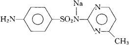 C11H11N4NaO2S=286.31 CAS-127-58-7 N-(4-甲基-2-嘧啶基)氨苯磺酰胺钠盐。 N-(4-Methyl-2-pyrimidinyl)sulfanilamide sodium salt. 2-(对-氨苯磺酰胺基)-4-甲基嘧啶钠盐。 2-(p-Aminobenzenesulfonamido)-4-methylpyrimidine sodium salt. 磺胺甲基嘧啶钠。 Sulfamerazine Sodium. DCIT,IP,USAN,USP,MI.  |