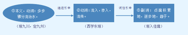 jiān 〈文〉❶动流进。东渐于海 ○❷动浸渍;滋润。渐染另见jiàn。 渐jiàn (漸)❶副渐渐。天气渐暖|库存渐少|循序渐进 ○❷名姓。另见jiān。