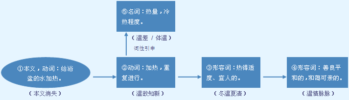 不冷不热。不受程度副词修饰。能重叠。 a.作谓语。可用于“是……的”格式中。 那药~~的|水是~的。 b.作定语。 西药一般用~开水吞服|~酒吃了身体暖和。 ❶稍微加热。能重叠。可用于“把”字句。 a.作带宾、带补谓语。 老人切了两盘菜,~了一壶酒,和我对饮起来|酒已经~过两次了|天气太冷,把药~热一点|请你再把牛奶~一~|把酒放在开水里~~。 b.作定语,要带“的”。 ~过的酒吃了对身体伤害较少|~的时间太短,牛奶还没有热。 ❷温习,复习。能重叠。 a.作带宾、带补谓语。 她一面~着台词,一面揣摩着人物的动作|快考试了,你要好好地~一~功课|外语他已经~过好几遍了|李明上午~了三遍数学|上次化学考得不好,这次我要好好~~。 b.作定语,常带“的”。 ~的次数越多,知识掌握得越牢固|~过的课程考试成绩总会好些。 【近】 〈形〉暖 〈动〉❶热 【反】 〈形〉冷 凉 〈动〉❶冰 【词语】 温差 温床 温存 温带 温度 温度计 温故知新 温厚 温情 温情脉脉 温泉 温润 温室 温顺 温文尔雅 温习 温驯