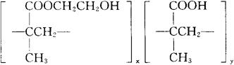 (C6H10O3)x(C4H6O2)v CAS-31693-08-0 2-甲基-2-丙烯酸2-羟乙酯与2-甲基-2-丙烯酸的聚合物。 2-Methyl-2-propenoic acid,2-hydroxyethyl ester,polymer with 2-methyl-2-propenoic acid. 异丁烯酸2-羟基乙酯与丁烯酸的聚合物。 2-Hydroxyethyl methacrylate ploymer with methacrylic acid. 隐形眼镜材料(亲水性)。 Focoflicon A,FRE-FLEX. USAN.  |