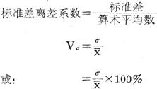 标准差对算术平均数之比。一般用系数或百分数表示。计算公式为: